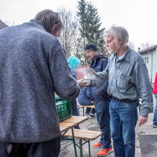 Die Obdachlosen werden dabei auch mit den von der PZ-Hilfsaktion „Menschen in Not“ organisierten Hygienepaketen und frischer Wäsche versorgt.