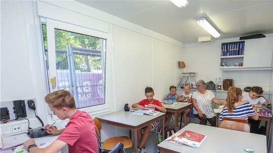 Pforzheim. Morgens, wenn die Mess noch schläft, müssen die Kinder der Schausteller schon hellwach sein. Rund um einen kleinen Container brüten sie über Mathe-, Deutsch- oder Englisch-Aufgaben – der Siebenjährige neben der Elfjährigen oder dem 14-Jährigen. Die Pforzemer Mess setzt auch bei der schulischen Bildung des Nachwuchses Maßstäbe.