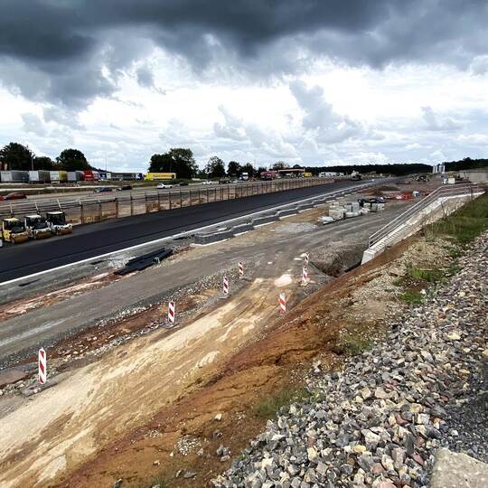 Damit steht den Verkehrsteilnehmern wieder eine weitere Querung über die A8 zur Verfügung. Auch die Herstellung der Fahrstreifen in Fahrtrichtung Stuttgart kam erfolgreich voran. Dasselbe gilt ebenso für den Bau der künftigen PWC-Anlage im Bereich der ehemaligen US-Tankstelle und den Bau des Schillbachdurchlasses.