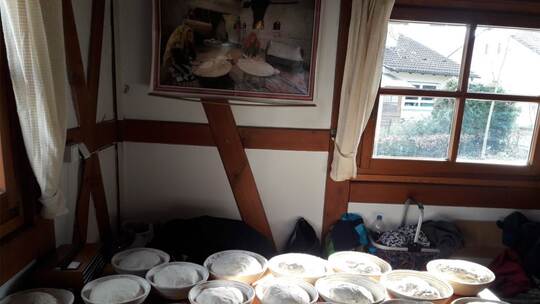 Auf dem Rathausplatz, der übrigens in keinem Verzeichnis so heißt, fand man einst einen geeigneten Platz. Der damalige Ortsvorsteher Heinrich Bayer und der Ortschaftrat waren schnell zu überzeugen. Man sammelte Spenden und gewann Sponsoren, den großen Rest finanzierte der Verein mit einem Kredit. Es entstand in der Huchenfelder Hauptstraße 131 ein 27 Quadratmeter großes Fachwerkgebäude samt einem aus Schamottesteinen gemauerter Holzbackofen mit einem Innenraum von zwei auf 1,20 Metern. Darin können 20 Brotlaibe à zwei Kilo gleichzeitig gebacken werden.