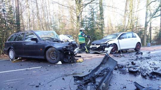Dabei prallte der Unfallverursacher im BMW, auf der L562 auf Höhe einer Hundeschule, mit einem entgegenkommenden Daimler-Benz zusammen. Der hinter dem Daimler fahrende VW-Golf fuhr daraufhin auf. Der Unfallverursacher wurde schwer verletzt und schwebte nach Informationen der Polizei kurzzeitig in Lebensgefahr. Die fünf Insassen des Daimlers, darunter Kinder im Alter von zwei, acht und elf Jahren, sowie der 30-jährige Fahrer des VW-Golfs wurden leicht verletzt.