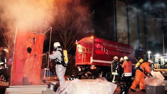 Die Feuerwehr war zeitweise mit 60 Kräften im Einsatz, jetzt sind noch 15 Einsatzkräfte vor Ort, darunter eine Dekontaminationseinheit, denn die Chemieschutzanzüge der Feuerwehrleute müssen gleich nach dem Einsatz gereinigt werden. Der Feuerwehr-Grundschutz im Stadtgebiet wird von dienstfreien Beamten und Mitgliedern der Freiwilligen Feuerwehr sichergestellt.