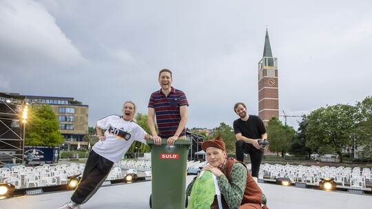 Für junge Theaterfans geht am Sonntag ab 13 Uhr „Wutschweiger“ über die große Open-Air-Bühne, ein Stück von Jan Sobrie und Raven Ruell für Zuschauer ab neun Jahre, das anhand der Schicksalsgemeinschaft von Sammy (Anne-Kathrin Lipps) und Ebenezer (Bernhard Meindl) finanzielle und soziale Armut sowie die daraus erwachsenden Bildungsnachteile thematisiert. Für Inszenierung und Ausstattung zeichnet Markus Löchner verantwortlich, die Dramaturgie stammt von Swantje Willems. Ab 16 Uhr ist dann „Räuberhände“ von Finn-Ole Heinrich für Jugendliche ab 13 Jahre zu erleben. Die Freundschaft von Janik (David Meyer) und Samuel (Nicolaus Martin), die unterschiedlicher nicht sein könnten, wird darin auf eine harte Probe gestellt. Inszeniert wurde diese packende Suche nach der eigenen Identität von Sascha Mey, auch hier ist Willems die Dramaturgin. Am Samstag, 17. Juli, feiert dann ab 11 Uhr „Wunschkind“ mit Myriam Rossbach und Kai Friebus für Kinder ab vier Jahre Premiere.