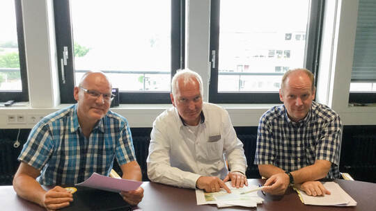 Bäderchef Georg Busch, Bernd Mellenthin, Chef des Eigenbetriebs Pforzheimer Verkehrs- und Bäderbetriebe, und Erster Bürgermeister Dirk Büscher (von links.)