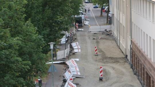 Bereits am vergangenen Sonntagmorgen gegen 6.30 Uhr sei er „durch einen Heidenlärm“ aus dem Schlaf gerissen worden, berichtet der Anwohner. Zwei junge Männer hätten alle Elemente des Zauns an der Baustelle auf der Steubenstraße umgeworfen. Dies sei „bei uns kein Einzelfall, sondern die Normalität“, schildert er die Lage vor Ort: „Alles, was nicht niet- und nagelfest ist, landet im Enzvorland oder in der Enz.“ erb