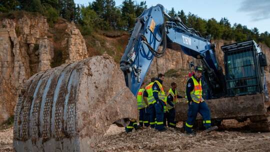 Böhmenkirch/Pforzheim. Der Bau von Behelfsstraßen stand ebenso auf dem Programm wie das Befüllen von Sandsäcken: Ein Großaufgebot an Einsatzkräften mit schweren Räumgeräten kam jüngst im Steinbruch Böhmenkirch im Kreis Göppingen zusammen. Das Technische Hilfswerk (THW) Baden-Württemberg hatte zu einer Übungs- und Ausbildungsveranstaltung der Fachgruppen „Räumen“ geladen. Unter den 185 Teilnehmern mit 95 Fahrzeugen und 35 Anhängern waren auch Vertreter des Ortsverbands Pforzheim mit dem in der Goldstadt stationierten Kettenbagger.