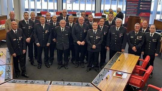 Pforzheim. Wortgleich würdigen Pforzheims Erster Bürgermeister Dirk Büscher und Kommandant Sebastian Fischer bei der Ehrungsveranstaltung der Pforzheimer Feuerwehr langjährige und unermüdliche Feuerwehrmänner, denen wichtige Auszeichnungen verliehen werden: „Mit Risiken für Ihre Gesundheit und Ihr Leben setzen Sie sich für die Allgemeinheit ein. Das verdient Respekt.“
