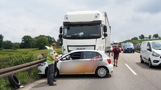 Auto und Lkw kollidieren auf A8 bei Niefern
