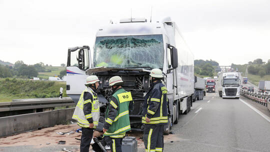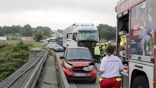 Hierbei wurde der 46-jährige Fahrer glücklicherweise nur leichter verletzt und in ein Krankenhaus gebracht. Auch die leichtverletzte Smart-Fahrerin wurde in eine Klinik gefahren. Die Fahrbahn wurde zur Unfallaufnahme und Bergung der Fahrzeuge voll gesperrt. Es bildete sich ein bis zu neun Kilometer langer Stau. In Gegenrichtung bildete sich ein fünf Kilometer langer Gafferstau.
