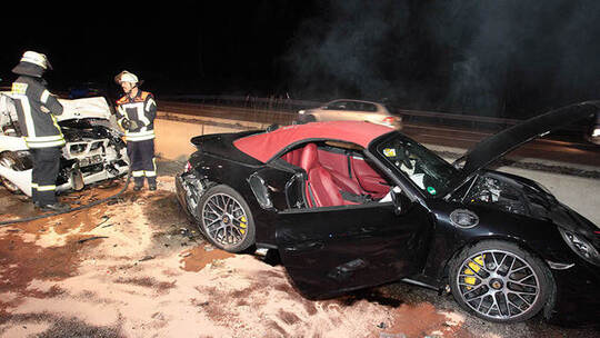 Schwere Kopfverletzungen hat der Fahrer im dunklen Porsche bei einem Auffahrunfall auf der A8 erlitten.