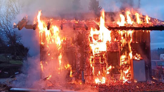 Beim Eintreffen des Löschzugs der Berufsfeuerwehr brannten die Fassade und der Dachstuhl eines rund 100 m² großen Wohngebäudes bereits in voller Ausdehnung. Da in der Anfangsphase noch eine Person im Gebäude vermutet wurde, wurde unverzüglich eine Suche eingeleitet. Parallel begannen weitere Kräfte mit der Brandbekämpfung. Aufgrund der unklaren Lage und der schwierigen Löschwasserversorgung in diesem Bereich wurden weitere Kräfte nachalarmiert. Glücklicherweise ergab die Personensuche, dass niemand im Gebäude war.