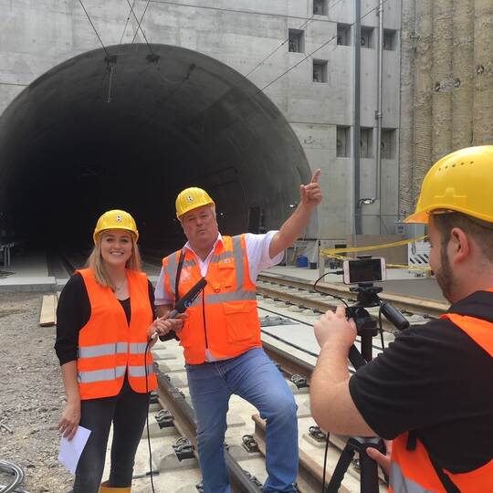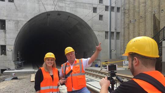 Das PZ-news Team dreht das Live-Video vor dem neuen Pforzheimer Tunnel.