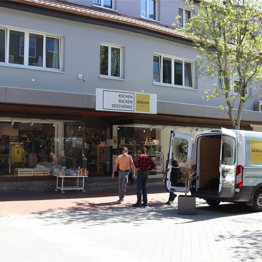Davon abgesehen ist sie froh, dass die vierwöchige Zeit der Schließung und des Verdienstausfalls für sie vorüber ist, und ihre Kunden sind das auch: Immer wieder warten Menschen vor dem Atelier auf der Straße, um eingelassen zu werden und etwa eines der geänderten Kleidungsstücke in Empfang zu nehmen, die auf Bügeln zur Abholung parat hängen. „Das Tragen einer Maske wird empfohlen“, heißt es auch auf einem Schild an der Eingangstür des Musikhauses Schlaile. „Dank der Loyalität unserer Kunden haben wir die Zeit einigermaßen überstnden“, sagt Geschäftsführer Karlheinz Pfeiffer. Diese hätten den Online-Einkauf genutzt oder per E-Mail sowie telefonisch Einkäufe getätigt. Aber natürlich habe auch sein Geschäft Einbußen zu verzeichnen, und so seien alle froh, dass an diesem Morgen gleich mit einigen Kunden der Geschäftsbetrieb wieder losgeht.