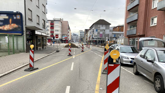 Dazu müssen die Einmündungen der Belfortstraße, Benckiserstraße, Moritz-Müller-, Schwebel- und Maystraße, der Meriantraße sowie der Erasmusstraße gesperrt werden. Auch die Parkplätze entlang der jeweiligen Einbauabschnitte fallen durch die Fahrbahnarbeiten vorübergehend weg. Danach wird für den Wechsel auf die Nordseite der Verkehr umgestellt, der dann bereits regulär über die neue Fahrbahn auf der Südseite fließen kann.