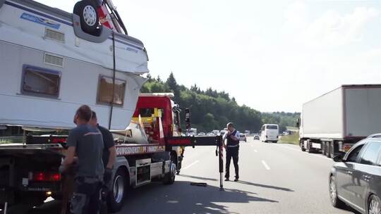Durch den Unfall wurde zunächst der mittlere und linke Fahrstreifen blockiert. Während der Unfallaufnahme wurde Gasgeruch festgestellt und sofort der gesamte Fahrverkehr in Richtung Karlsruhe eingestellt. Die hinzugerufene Feuerwehr stelle fest, dass ein Gasschlauch einer Propangasflasche beschädigt war. Nach dem Schließen der Ventile war die Explosionsgefahr beseitigt.