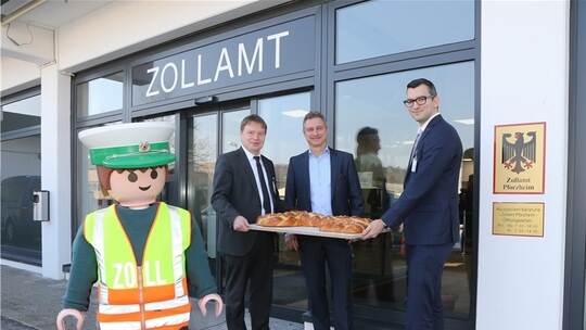Er wies in seiner Rede auf die Vorzüge hin, die der neue angemietete Standort im Vergleich zu den über Jahrzehnte genutzten Räumen in der Durlacher Straße mit sich brächten. Denn es sind neben dem barrierefreien Zugang nicht nur fünf Kunden- und zwei Behindertenparkplätze entstanden, sondern auch Lastwagen-Parkplätze.Mit der Ein- und Ausfuhr von Waren in und aus der Europäischen Union sind 16 Beschäftigte betraut. Das gehe von der privaten Geschenksendung, über Internetbestellungen bis hin zu Containersendungen.