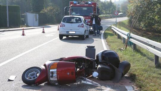 Am Dienstagvormittag hat sich ein heftiger Unfall auf der Eisinger Landstraße in Pforzheim ereignet. Ein Rollerfahrer ist dabei schwer verletzt worden.