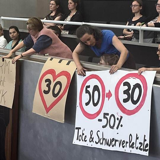Mehr Tempo 50 in Pforzheim beschlossen: Anwohner mit Plakat-Protest im Gemeinderat