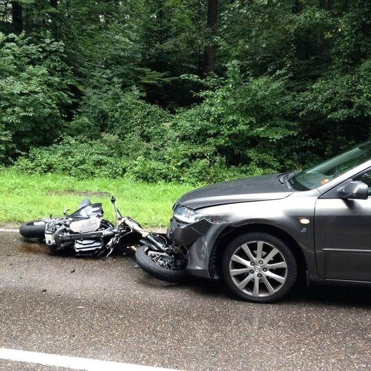{element}Durch die Wucht wurde der Zweiradfahrer in den Gegenverkehr geschleudert. Ein entgegenkommender Mazda-Fahrer erkannte die Situation zu spät und konnte nicht mehr rechtzeitig bremsen. Der Motorradfahrer zog sich bei dem Aufprall so schwere Frakturen zu, dass er seinen Verletzungen im Krankenhaus schließlich erlag. Der Fahrer stammte aus dem Raum Bretten, der hinter ihm fahrende Motorradfahrer erlitt einen Schock. Der Sachschaden beträgt rund 10.000 Euro.