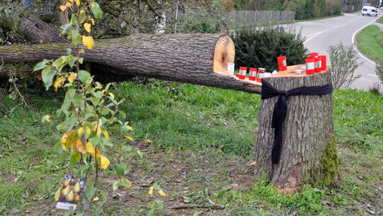 Mühlacker-Lomersheim. Die Lomersheimer haben 2014 lange um ihren Birnbaum gekämpft. Nötig gemacht hatte das damals eine neue EU-Verordnung, die zu dem Ergebnis gekommen war, dass keine festen größeren baulichen Hindernisse oder eben Bäume mit einem Stammumfang größer als durchschnittlich zehn Zentimeter mehr gestattet sind. Trotz aller Anstrengungen gab es kein positives Ende für den Birnbaum. Er wurde vor über zehn Jahren, vom 19. auf den 20. Oktober 2014, von bis heute unbekannten Tätern gefällt. Der Heimatverein Lomersheim hat den Baumstamm erhalten – und führt ihn nach diesem traurigen Jubiläum nun einer neuen Nutzung zu.