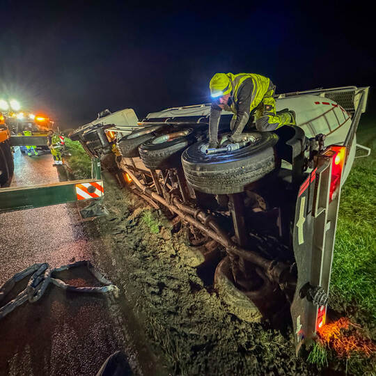 Folgenschwerer Unfall bei Königsbach-Stein: Aufwendige Lastwagenbergung bis in den Abend
