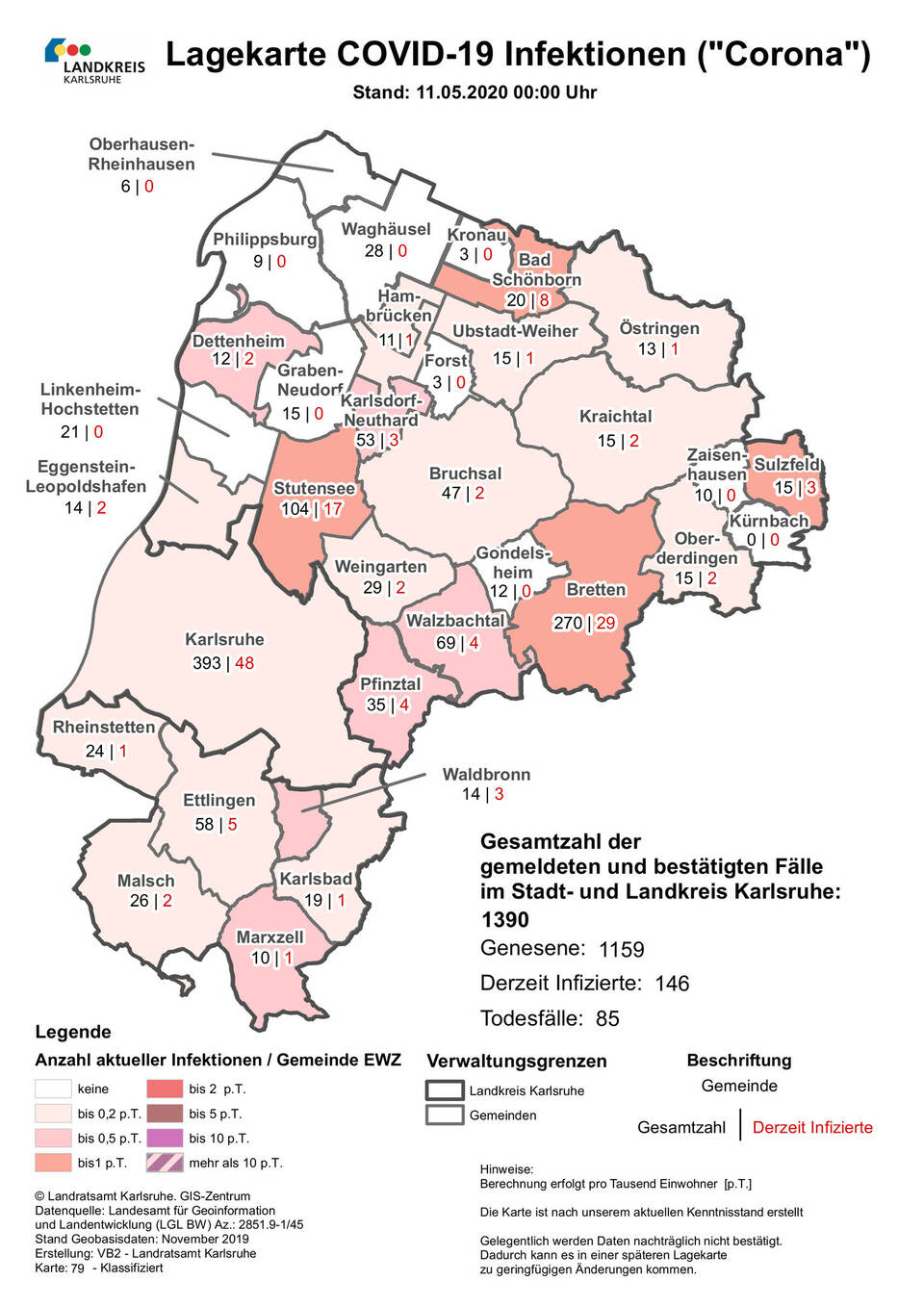 Neun Kommunen im Landkreis Karlsruhe ohne bestätigten Corona-Fall