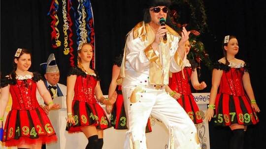Untrennbar zu einer gediegenen Prunksitzung gehört das Tanzen. Welche Schwierigkeiten es dabei geben kann, zeigten Lisa Lamprecht und Jan Seiter in ihrem heiteren Stück „Der Tanzlehrer“. Ihr Können stellten die Tänzerinnen des „Kakadu“ unter Beweis. Das vielversprechende junge Funkenmariechen Mia Uhr, trainiert von Sabrina Laudenklos und Saskia Ohnmacht, gab eine gelungene Premiere. Die „Kleine Prinzengarde“ von Désirée Wessinger und Stephanie Hottinger zeigte den Schautanz „Lollipop“. Für eine echte Sensation sorgte die „Mittlere Prinzengarde“ von Daniela Händler und Jenny Padalino, die nicht nur schwungvoll zu Elvis Presleys „Viva Las Vegas“ tanzte, sondern auch den Beweis erbrachte: Elvis lebt!“