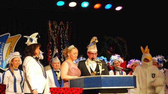 Es kursierte das Gerücht, dass im weißen Glitzerkostüm „Kakadu“-Legende Achim „Lampe“ Lamprecht stecke. Dieser zeigte sich im Verlauf des Abends tatsächlich als wahrer „King“ der Bilfinger Fasnet, der in seiner gefeierten Büttenrede „Der Lampe, ein Original“ heitere Einblicke in Privates gab.