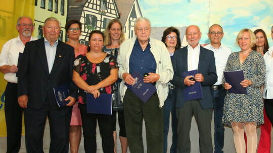 Die für über elf Jahre Geehrten sind: Rudolfo Alfaiate, Sonja Bauer, Edeltraud Beck, Luisa Bellezer, Vanessa Benzinger, Johanna Bergholz, Roland Bernard, Sarah Collmer, Juliane Conle, Michelle Drefs, Anna-Lena Erler, Chiara Erler, Marlen, Michael, Sabine und Thomas Etzel, Vivienne Fröhlich, Jennifer Gerhardt, Andreas Gerlich, Laura Göckler, Emma Goldfuß, Anissa Grossmann, Andy Guder, Jessica Vicente, Oliver Jost, Joachim Kirste, Pia Kleinert, Sandra, Tim und Tina Kristek, Timo Meindl, Robin Müller, Gina Österreicher, Felix und Julia Paulus, Lara Pfeiffer, Marcel Regelmann, Pascal und Sven Rottner, Bianca Claus, Franziska Schmid, Carolin Schmid, Linda und Timo Schroth, Aileen, Lea und Markus Siebert, Diandra und Nicole Steinbach, Samira Steinmüller, Kim Stengele, Lousia Wemmer und Laura Widmann.