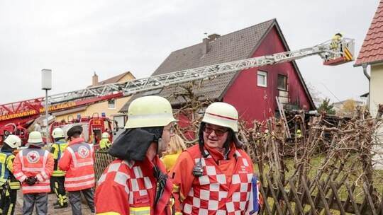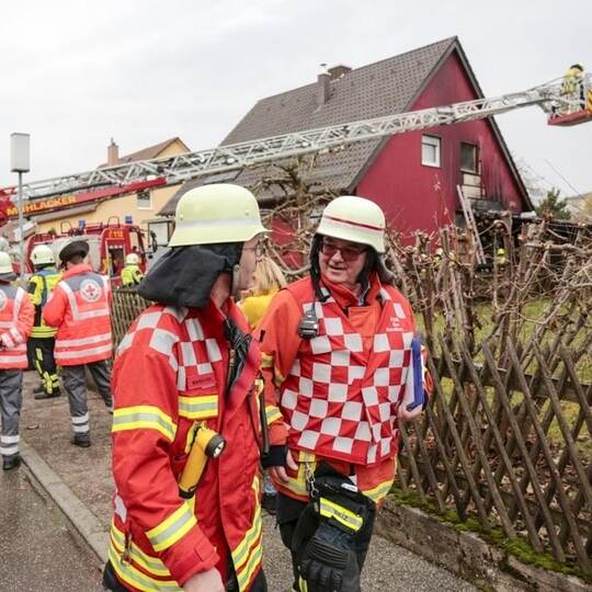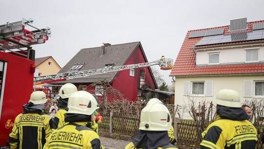 Ein brennender Holzanbau an einem Haus in Ölbronn hat am Sonntag den Einsatz von insgesamt 70 ...