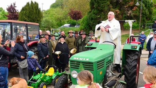 „Der Traktor wurde quasi zum Symbol des Lebens“. Vor den Traktoren stehend, erbat Pfarrer Kuhn den Segen Gottes und seinen Schutz für alle Teilnehmer, auch den Segen für die Natur und die Menschheit.