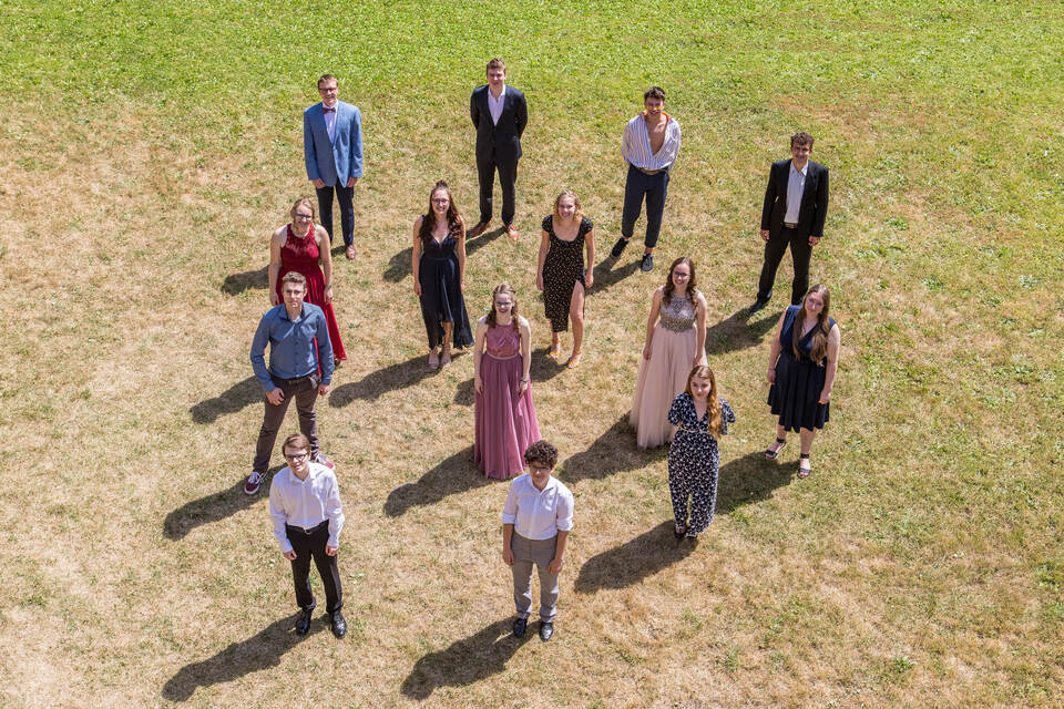 ■ Abiturienten: Notendurschnitt: 2,2. Bestes Abitur: Chiara Rembor (1,2), Karlotta Chmielewski, Matthis Gölz, Julius Kost, Nico Kurtz, Niklas Landos, Selina Lehrer, Amelie Meister, Konstanze Müller-Quade, Chiara Rembor, Amélie Rieger, Silas Schäfer, Simone Scholz, Paul Schramm, Franziska Zimmermann