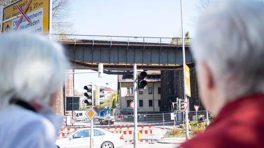 Für die Fußgänger wurde ein Bus-Shuttle-Verkehr von vier Uhr morgens bis Mitternacht eingerichtet. Haltepunkt ist der Kreuzungsbereich der Bahnhofstraße / Stuttgarter Straße und die sich in unmittelbarer Nähe auf der gegenüberliegenden Straßenseite befindliche Bushaltestelle.