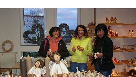 Der zweitägige Adventsmarkt „Am Wolfsbaum“ in Göbrichen präsentierte sich mit viel Flair und einem reichhaltigen Angebot, wie etwa Porzellan-Engel in verschiedenen Größen. Diese bestaunte auch Eva Bittnerová, welche von dem 550 Kilometer entfernten Budweis aus Tschechien angereist kam und mit ihrer Tochter Eva Beck und deren Freundin Dorothea Krenkel den Markt besuchte. Doch vor allem Kinderaugen ließ das große Angebot leuchten. Hierzu zählten Weihnachtskrippen, an denen sich auch die zehnjährige Lara-Marie Korsch aus Bauschlott erfreute. Erstmals vertreten mit Wintergrillen waren die „Schickle Brothers“ von der Metzgerei Schickle aus Eisingen. In der Küche von Wohnaccessoire Nüssle fanden Kochvorführungen mit Florence Zettel statt. pd