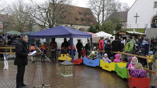 „In Friolzheim wird die Adventszeit mit dem Weihnachts-Basar eingeläutet“, sagte Bürgermeister Michael Seiß bei der Eröffnung am Sonntagvormittag. Der Posaunenchor spielte zum Auftakt auf dem Marktplatz. Die Kinder warteten unterdessen schon sehnlich darauf, dass das beliebte „Bähnle“ endlich seine Runden drehte. Die ursprünglich vom Vatertreff eingeführte kleine Eisenbahn für die Kleinen ist in diesem Jahr in die Hände der Jugendfeuerwehr übergeben worden, die sich auch zukünftig um den Betrieb der beliebten Attraktion kümmern wird. Währen die Kinder dort ihre Runden drehten, konnten sich die Erwachsen in aller Ruhe an den Ständen von örtlichen Vereinen und Institutionen und einigen handwerklich begabten Privatleuten umsehen. ck