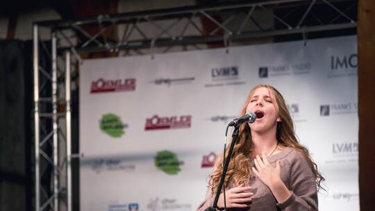Am Samstag traten dann Angelina Cali, die Geschwister Magdalena und Claudius Haag, Nico Ulshöfer, Sina Langenstein und Sophia Axtmann gegeneinander an. "Neue welle"-Moderator Jens Zielinski führte durch den Abend und interviewte zwischen den Gesangseinlagen immer wieder die Finalisten auf der Bühne über Privates, Musik oder ihre selbst ausgesuchten Songs. In drei Runden wurde für die knapp 190 Zuschauer, darunter viele Familienangehörige und Freunde der Musiker, gesungen.