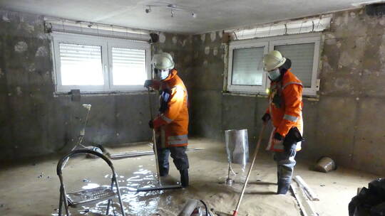 „Unser Keller war bis zur Decke geflutet. Als das erste Wasser von der Feuerwehr abgepumpt war, schwammen uns die Waschmaschine und Trockner entgegen. Es war schlimmer als vor zwei Wochen“; so Bernd Hey, ebenfalls Bewohner der Fliederstraße. Für ihn wurde erneut deutlich, dass die riesigen Wassermassen von der angrenzenden Feldflur kommen und wie ein reißender Bach durch den hinteren Bereich dieser Straße, die hier zum Trichter wird, strömen. Hinzu kommt laut Ursula Reiser, dass im ausgepumpten Keller eine rote Schlammschicht verbleibt, wodurch das komplette Inventar zum Müll wird.