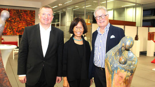 Ausstellung „AndersARTig“: Skulpturen aus Ton beten in der Sparkasse Mühlacker