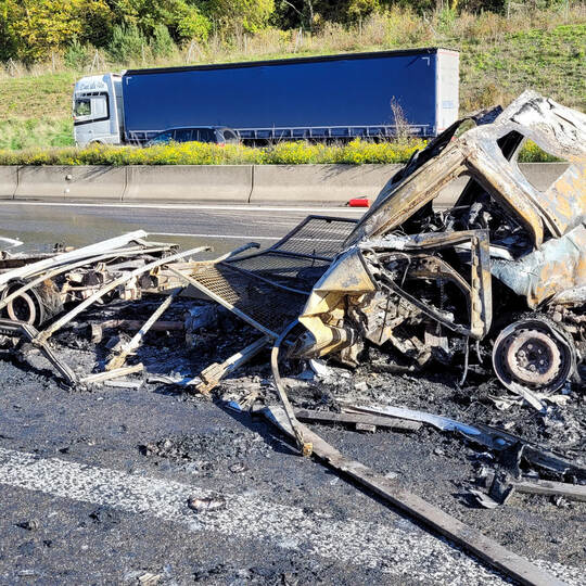 Unfall auf der A8: Kleintransporter geht in Flammen auf