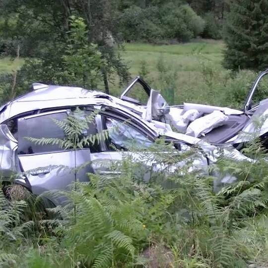 Laut Polizei kam die Mazdafahrerin zwischen Calmbach und Rehmühle am Ausgang einer leichten Linkskurve aus bislang ungeklärter Ursache nach rechts von der Fahrbahn ab. Im Bereich der stark abschüssigen Böschung überschlug sich der Wagen nach rund 90 Metern und rutschte auf dem Dach über einen Baumstumpf. Dieser deformierte große Teile des Daches in Richtung des Innenraums. Weitere 60 Meter später kam das Auto auf den Rädern in Endstellung. Beide Verstorbenen waren angeschnallt.