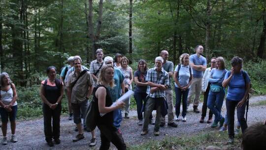 Bei Nacht im Wald sind alle Sinne gefragt: Försterin Sarah Zwerenz führt bei Dämmerungswanderung durchs Nöttinger „Kaffeewäldle“