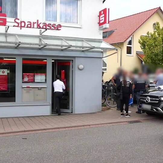 Wie die Polizei mitteilte, gingen die beiden Männer um 15.10 Uhr zielgerichtet an einen Schalter und forderten Bargeld, während sie die Mitarbeiter mit ihren Schusswaffen bedrohten. Das Geld – mehrere hundert Euro Bargeld – steckten sie in einen roten Beutel und flohen zu Fuß. Welche Rolle ein Fahrrad spielt, das unweit der Sparkasse entdeckt wurde, war zunächst unklar.