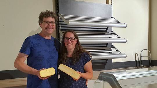 Neben den Produkten aus eigener Herstellung wie etwa verschiedenen Käsesorten aus der eigenen Käserei, Milch, Quark oder Joghurt wird Familie Göz ein kleines Bio-Vollsortiment von A wie Apfel bis Z wie (Bio-) Zucker im Hofladen anbieten. Frische Backwaren etwa kommen vom Bio-Bäcker Schäfer aus Illingen und Eier vom Bioland Hof Reiser in Straubenhardt.„Zu Beginn werden wir den Laden freitags von 8 Uhr bis 12 Uhr und von 14 Uhr bis 18 Uhr sowie samstags von 8 Uhr bis 12 Uhr öffnen“, sagt Nadine Göz. Das Herzensprojekt Biobauernhof mit eigener Schaukäserei – durch ein Fenster kann die Produktion begleitet werden und auch in den Käsekeller können Interessierte einen Blick durch ein großes Fenster werfen – wollen die beiden jungen Landwirte langsam angehen.