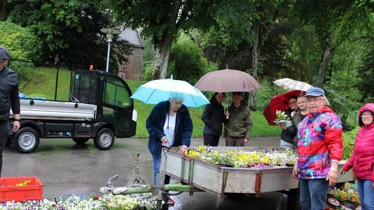Diese liebgewordene Aktion gestaltete sich in diesem Jahr etwas schwierig, denn sie drohte buchstäblich ins Wasser zu fallen. Doch einige Unentwegte ließen sich vom heftigen Dauerregen nicht abhalten und kamen mit Kisten, um sich mit den pflegeleichten Veilchen einzudecken. Der Chef der Kurgärtnerei, Jochen Heuser, meinte: „Wer im Garten nicht jedes Unkraut penibel entfernt, hat die Chance, auch im nächsten Jahr ausgesamte Nachkommen von diesen Pflanzen zu bekommen.