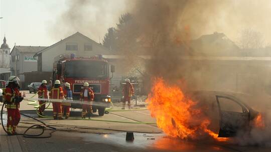Noch vor Beginn der Löscharbeiten der Feuerwehr hat sich das Auto zudem selbstständig gemacht und ist in einen 15 Meter weit entfernten Stromverteiler gerollt. Der Stromverteiler blieb unbeschädigt.