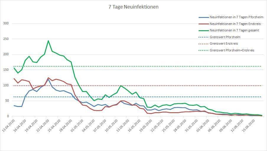 Enzkreis/Pforzheim/Kreis Calw. Die Zahl der akuten Erkrankungen am Coronavirus geht in der gesamten Region weiter enorm zurück. Auch gestern meldeten die Gesundheitsämter keine Neuinfektionen in Pforzheim und im Kreis Calw und nur zwei im Enzkreis.