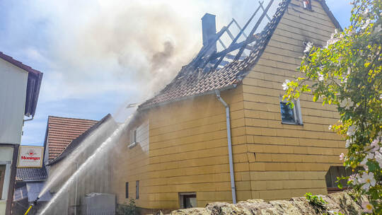 Neulingen-Göbrichen. Bei einem Dachstuhlbrand im Ortskern von Neulingen ist das Dachgeschoss eines Wohnhauses in der Ortsmitte vollständig ausgebrannt. Um 12:34 Uhr wurde durch einen zufällig aus dem Fenster sehenden Nachbarn und wenige Augenblicke später durch den zufällig vorbeifliegenden Polizeihubschrauber ein Dachstuhlbrand eines Einfamilienhauses in der Kirchenstraße gegenüber der Göbricher Kirche gemeldet. Bei der Bildübertragung des Polizeihubschraubers konnte die Brandausbreitung und der Vollbrand des Dachstuhles von Einsatzkräften kontrolliert werden. Das Gebäude wurde total beschädigt.