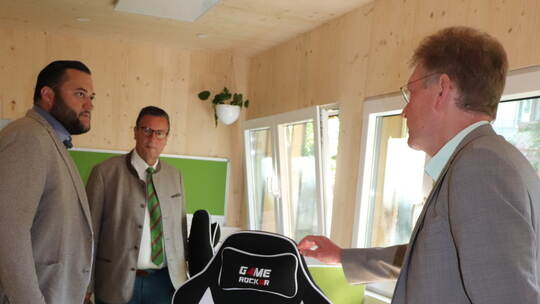 Werfen gemeinsam einen Blick in den Arbeitscontainer: Bad Wildbads Bürgermeister Marco Gauger, Minister Peter Hauk und Landrat-Stellvertreter Frank Wiehe (von links). Foto:Biesinger