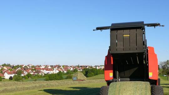 Und heute? Familie Elsäßer vom Birkenhof in Bauschlott hat bereits am Freitag, also einen Tag früher, mit dem Mähen des Grases begonnen. Zum Pressen des Heus am Sonntagabend wurde erstmals eine neue Rundballenpresse eingesetzt, nachdem das 20 Jahre alte Vorgängermodell ausgedient hatte. Die rund 300 Kilogramm schweren Rundballen sind in zwei bis drei Minuten gepresst, wie von Jungbauer Martin Elsäßer zu erfahren ist. Sie umfassen rund 15 bis 20 der herkömmliche Hochdruckballen, welche parallel auch noch gepresst werden. Die Rundballen kann eine Person alleine pressen, für die Hochdruckballen braucht es mindestes zwei Personen – eine, die den Traktor fährt, und eine, die die Ballen auf den Hänger setzt. Die neuen Rundballen sind ungleich größer: Wo man acht bis zehn von ihnen verlädt, muss man rund 150 Hochdruckballen auf den Hänger wuchten.