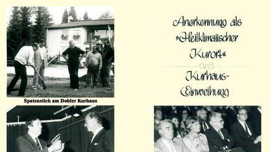 Als Zentrum des Kurbetriebes wurde vor nunmehr dreißig Jahren das Kurhaus auf dem Dobel gebaut und unter Alt-Bürgermeister Gerhard Westenberger in Betrieb genommen. Am 18. Juni 2014 feiert Dobel das Jubiläum 30 Jahre Heilklimatischer Kurort. Gäste sind willkommen. Anmeldungen werden noch bis 11.06.2014 entgegengenommen. Telefon 07083 745 16.